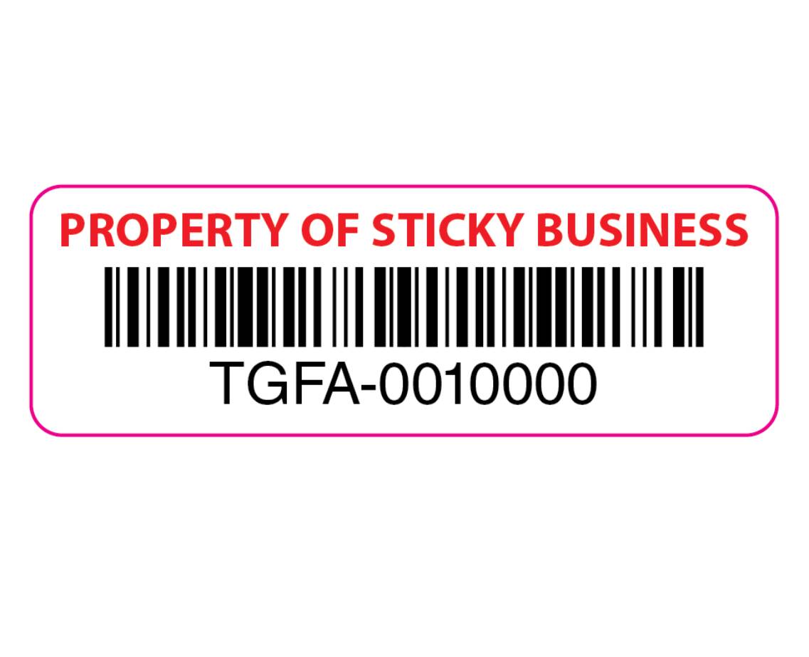Great for all professions and business', you can clearly tag your products or belongings with this barcode label. Choose from either a Code 128 or Code 3 of 9 barcode, as well the text colour for your company name, and either a glossy or matte lamination to finish. Once we know what number you'd like to start with and our generative software will take care of the rest.